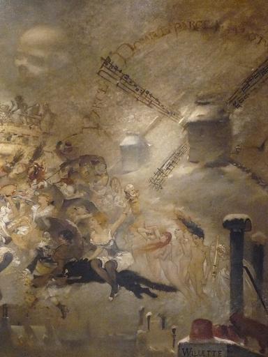 | Keywords: WILLETTE Adolphe,1884 - Parce Domine - Detail 146.jpg - Detail 146 - Une foule en fête et un attelage à imperiale au-dessus des toits de Paris près des moulins - a festive crowd and a double-deck carriage above the roofs of Paris near the mills - Montmartre - 1884 Oil on canvas Montmartre Own other versions PD-old-auto 1926 Details of Parce Domine by Adolphe Willette | ||||