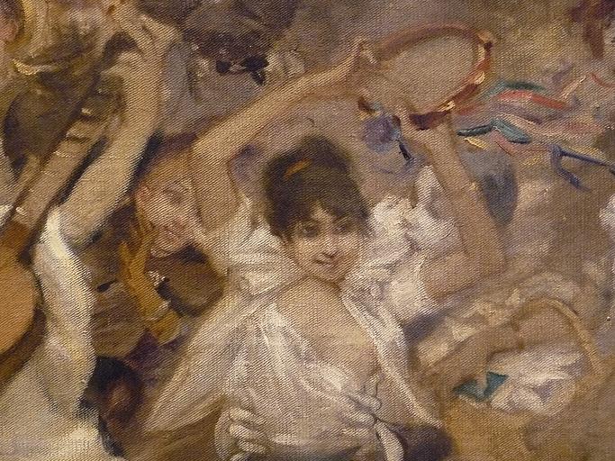 | Keywords: WILLETTE Adolphe,1884 - Parce Domine - Detail 042.jpg - Detail 042 - Jeune femme jouant du tambourin - Young woman playing tambourine - Montmartre - 1884 Oil on canvas Montmartre Own other versions PD-old-auto 1926 Details of Parce Domine by Adolphe Willette |