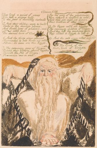 Keywords: William Blake - The First Book of Urizen, Plate 25, "They lived a period of years . . . ." (Bentley 28) - Google Art Project.jpg print brown watercolor paper cream Color-printed relief etching in orange-brown with watercolor on moderately thick slightly textured cream wove paper London 1757 London 1827 William male 2369124 Blake British 1757 - 1827 /collection/yale-center-for-british-art/artwork/the-first-book-of-urizen-plate-25-they-lived-a-period-of-years-bentley-28-william-blake/2363474/ William Blake Artist /artist/william-blake/4130035/ 4130035 /collection/yale-center-for-british-art/ Yale Center for British Art 2305845 http //britishart yale edu/ 2/23/2012 9 36 06 PM /collection/yale-center-for-british-art/artwork/the-first-book-of-urizen-plate-25-they-lived-a-period-of-years-bentley-28-william-blake/2363474/ 1794 1794 beard men rope net text historical subject Color-printed relief etching in orange-brown with watercolor on moderately thick slightly textured cream wove paper 149 2363474 False 1794 3/24/2012 2 20 20 PM YCBA/lido-TMS-2370 http //collections britishart yale edu/vufind/Record/1667328 Yale Center for British Art Paul Mellon Collection print 1790 1800 Felpham Creation w105 x h149 cm 1794 False 0 65625 Volume the-first-book-of-urizen-plate-25-they-lived-a-period-of-years-bentley-28-william-blake The First Book of Urizen Plate 25 They lived a period of years Bentley 28 f 105 Inscribed in graphite lower left 26 Inscription _Signed_and_Dated Not signed not dated Not on View Color-printed relief etching in orange-brown with watercolor on moderately thick slightly textured cream wove paper beard men rope net text historical subject special url_id mgEvdGtl2ZTK5Q PD-old-100-1923 1827 The Book of Urizen Google Art Project works by William Blake |