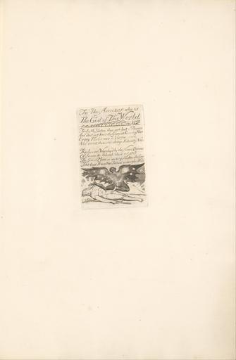 | Keywords: William Blake - For the Sexes- The Gates of Paradise, Plate 19, "To The Accuser . . . ." (Bentley 21) - Google Art Project.jpg etching line engraving paper cream Etching and line engraving on moderately thick slightly textured cream wove paper London 1757 London 1827 William male 2369124 Blake British 1757 - 1827 /collection/yale-center-for-british-art/artwork/for-the-sexes-the-gates-of-paradise-plate-19-to-the-accuser-bentley-21-william-blake/2398114/ William Blake Artist /artist/william-blake/4130035/ 4130035 /collection/yale-center-for-british-art/ Yale Center for British Art 2305845 http //britishart yale edu/ 2/23/2012 9 57 47 PM /collection/yale-center-for-british-art/artwork/for-the-sexes-the-gates-of-paradise-plate-19-to-the-accuser-bentley-21-william-blake/2398114/ 1826 1826 bald moon sun angel stars men text wings cane walking-sticks staff walking stick nudes historical subject Etching and line engraving on moderately thick slightly textured cream wove paper 349 2398114 False 1826 3/25/2012 6 37 33 PM YCBA/lido-TMS-3936 http //collections britishart yale edu/vufind/Record/1668271 Yale Center for British Art Paul Mellon Collection print 1820 1830 Felpham Creation w238 x h349 cm 1826 False 0 654296875 Volume for-the-sexes-the-gates-of-paradise-plate-19-to-the-accuser-bentley-21-william-blake For the Sexes The Gates of Paradise Plate 19 To The Accuser Bentley 21 f 238 No inscription Inscription _Signed_and_Dated Not signed not dated Not on View Etching and line engraving on moderately thick slightly textured cream wove paper bald moon sun angel stars men text wings cane walking-sticks staff walking stick nudes historical subject special url_id UgENMGi3TY2NEQ PD-old-100-1923 1827 For the Sexes Google Art Project works by William Blake |