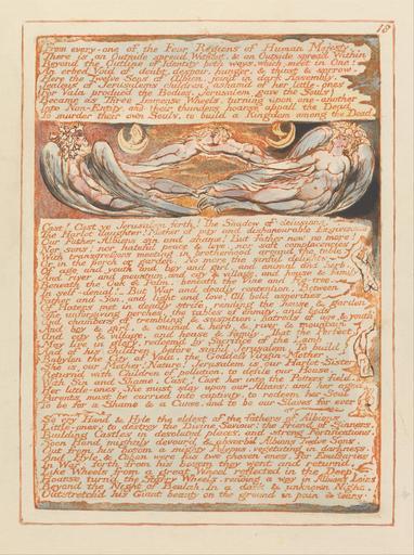 | Keywords: William Blake - Jerusalem, Plate 18, "From every-one of the Four Regions...." - Google Art Project.jpg print orange pen ink black watercolor paper cream Relief etching printed in orange with pen and black ink and watercolor on moderately thick smooth cream wove paper London 1757 London 1827 William male 2369124 Blake British 1757 - 1827 /collection/yale-center-for-british-art/artwork/jerusalem-plate-18-from-every-one-of-the-four-regions-william-blake/2387085/ William Blake Artist /artist/william-blake/4130035/ 4130035 /collection/yale-center-for-british-art/ Yale Center for British Art 2305845 http //britishart yale edu/ 2/23/2012 9 46 12 PM /collection/yale-center-for-british-art/artwork/jerusalem-plate-18-from-every-one-of-the-four-regions-william-blake/2387085/ 1804 1804 to 1820 moon women kissing angels sky men fruit text flower plant flower plant nudes historical subject Relief etching printed in orange with pen and black ink and watercolor on moderately thick smooth cream wove paper 225 2387085 False 1820 3/25/2012 6 19 04 PM YCBA/lido-TMS-3446 http //collections britishart yale edu/vufind/Record/1667720 Yale Center for British Art Paul Mellon Collection print 1800 1830 Felpham Creation w162 x h225 cm 1804 to 1820 False 0 74609375 Volume jerusalem-plate-18-from-every-one-of-the-four-regions-william-blake Jerusalem Plate 18 From every-one of the Four Regions j 162 No inscription Inscription _Signed_and_Dated Not signed not dated Not on View Relief etching printed in orange with pen and black ink and watercolor on moderately thick smooth cream wove paper moon women kissing angels sky men fruit text flower plant flower plant nudes historical subject special url_id zgG8svWF-y9--g PD-old-100-1923 1827 Jerusalem The Emanation of the Giant Albion - copy E 018 Google Art Project works by William Blake |