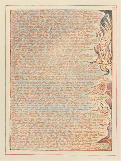 | Keywords: William Blake - Jerusalem, Plate 29, "Then the Divine Vision...." - Google Art Project.jpg print orange pen ink black watercolor paper cream Relief etching printed in orange with pen and black ink and watercolor on moderately thick smooth cream wove paper London 1757 London 1827 William male 2369124 Blake British 1757 - 1827 /collection/yale-center-for-british-art/artwork/jerusalem-plate-29-then-the-divine-vision-william-blake/2389045/ William Blake Artist /artist/william-blake/4130035/ 4130035 /collection/yale-center-for-british-art/ Yale Center for British Art 2305845 http //britishart yale edu/ 2/23/2012 9 46 26 PM /collection/yale-center-for-british-art/artwork/jerusalem-plate-29-then-the-divine-vision-william-blake/2389045/ 1804 1804 to 1820 women flames men fire text vines nudes historical subject Relief etching printed in orange with pen and black ink and watercolor on moderately thick smooth cream wove paper 223 2389045 False 1820 3/24/2012 4 54 46 PM YCBA/lido-TMS-3458 http //collections britishart yale edu/vufind/Record/1667742 Yale Center for British Art Paul Mellon Collection print 1800 1830 Felpham Creation w162 x h223 cm 1804 to 1820 False 0 755859375 Volume jerusalem-plate-29-then-the-divine-vision-william-blake Jerusalem Plate 29 Then the Divine Vision j 162 No inscription Inscription _Signed_and_Dated Not signed not dated Not on View Relief etching printed in orange with pen and black ink and watercolor on moderately thick smooth cream wove paper women flames men fire text vines nudes historical subject special url_id 4wGrcqaJ92IZLA PD-old-100-1923 1827 Jerusalem The Emanation of the Giant Albion - copy E 029 Google Art Project works by William Blake |