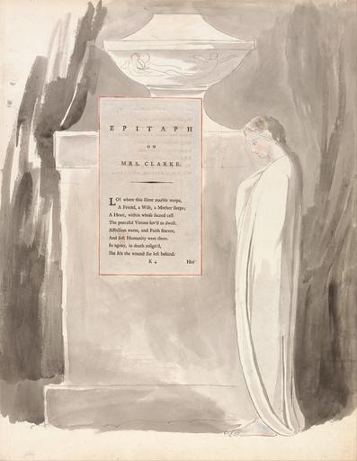| Keywords: William Blake - The Poems of Thomas Gray, Design 103, "Epitaph on Mrs. Clarke." - Google Art Project.jpg watercolor pen ink black graphite paper cream Watercolor with pen and black ink and graphite on moderately thick moderately textured cream wove paper London 1757 London 1827 William male 2369124 Blake British 1757 - 1827 /collection/yale-center-for-british-art/artwork/the-poems-of-thomas-gray-design-103-epitaph-on-mrs-clarke-william-blake/2374668/ William Blake Artist /artist/william-blake/4130035/ 4130035 /collection/yale-center-for-british-art/ Yale Center for British Art 2305845 http //britishart yale edu/ 2/23/2012 9 49 30 PM /collection/yale-center-for-british-art/artwork/the-poems-of-thomas-gray-design-103-epitaph-on-mrs-clarke-william-blake/2374668/ 1797 between 1797 and 1798 sitting girl man fireplace monument hearth text grave tomb obelisk tombstone chair candle mantle gown historical subject book urn mourning Watercolor with pen and black ink and graphite on moderately thick slightly textured cream wove paper with inlaid letterpress page 419 2374668 False 1798 3/24/2012 3 24 35 PM YCBA/lido-TMS-3584 http //collections britishart yale edu/vufind/Record/1667876 Yale Center for British Art Paul Mellon Collection painting 1790 1800 Felpham Creation w324 x h419 cm between 1797 and 1798 False 0 775390625 Volume the-poems-of-thomas-gray-design-103-epitaph-on-mrs-clarke-william-blake The Poems of Thomas Gray Design 103 Epitaph on Mrs Clarke p 324 Inscribed on verso in graphite upper center x Inscription _Signed_and_Dated Not signed not dated Not on View Watercolor with pen and black ink and graphite on moderately thick slightly textured cream wove paper with inlaid letterpress page sitting girl man fireplace monument hearth text grave tomb obelisk tombstone chair candle mantle gown historical subject book urn mourning special url_id 3wH1KDX6jnzkow PD-old-100-1923 1827 Google Art Project works by William Blake William Blake's illustrations to Thomas Gray's Poems 103 |