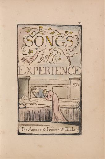 MAKE A MEME View Large Image William Blake - Songs of Innocence and of Experience, Plate 30, Experience Title Page (Bentley 29) - Google Art Project.jpg print brown pen ink black watercolor paper cream Relief etching printed in dark-brown with pen and black ink and ...