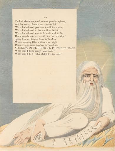 | Keywords: William Blake - Young's Night Thoughts, Page 63, "This King of Terrors Is the Prince of Peace" - Google Art Project.jpg etching line engraving watercolor paper cream Etching and line engraving with watercolor on moderately thick slightly textured cream wove paper London 1757 London 1827 William male 2369124 Blake British 1757 - 1827 /collection/yale-center-for-british-art/artwork/youngs-night-thoughts-page-63-this-king-of-terrors-is-the-prince-of-peace-william-blake/2370952/ William Blake Artist /artist/william-blake/4130035/ 4130035 /collection/yale-center-for-british-art/ Yale Center for British Art 2305845 http //britishart yale edu/ 2/23/2012 9 48 57 PM /collection/yale-center-for-british-art/artwork/youngs-night-thoughts-page-63-this-king-of-terrors-is-the-prince-of-peace-william-blake/2370952/ 1797 1797 beard man men paper text historical subject scroll information artifact Etching and line engraving with watercolor on moderately thick slightly textured cream wove paper 445 2370952 False 1797 3/24/2012 2 58 39 PM YCBA/lido-TMS-3558 http //collections britishart yale edu/vufind/Record/1667851 Yale Center for British Art Paul Mellon Collection print 1790 1800 Felpham Creation w318 x h445 cm 1797 False 0 763671875 Volume youngs-night-thoughts-page-63-this-king-of-terrors-is-the-prince-of-peace-william-blake Young's Night Thoughts Page 63 This King of Terrors Is the Prince of Peace y 318 No inscription Inscription _Signed_and_Dated Not signed not dated Not on View Etching and line engraving with watercolor on moderately thick slightly textured cream wove paper beard man men paper text historical subject scroll information artifact special url_id xQEQWz3QHuZ4vA PD-old-100-1923 1827 William Blake's illustrations to Young's Night Thoughts 063 Google Art Project works by William Blake |