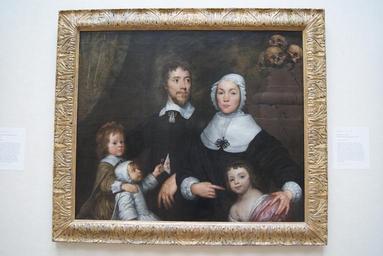 Keywords: William Dobson, Portrait of a Family, Probably that of Richard Streatfeild (c. 1645, Yale Center for British Art).jpg Artwork Creator William Dobson A portrait of family probably that of Richard Streatfeild 1611 “1676 his wife Ann and three of their children The fact that Ann is pointing to a naked child the cherries held by the youngest child and the skulls piled up on a broken pedestal may allude to the death of some of the Streatfeild's children in infancy The work was unfinished at the time of Dobson's death and portions of it especially the two children on the left appear to have been completed by another person c 1645 oil canvas in 31 24 5 Institution Yale Center for British Art Paul Mellon Collection <br> New Haven Connecticut United States accession number B1981 25 241 object history credit line http //collections britishart yale edu/vufind/Record/1669262 Own ; photographed by Smuconlaw on 2012 04 29 16 11 other versions PD-Art-100 cc-by-sa-3 0 1645 paintings 17th-century family portraits 17th-century portrait paintings in the Yale Center for British Art Portraits of parents and children William Dobson |