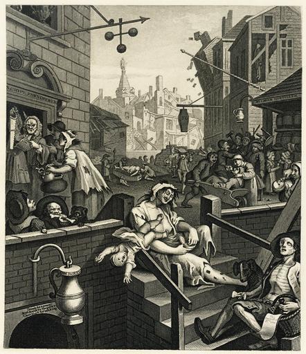 | Keywords: William Hogarth - Gin Lane.jpg  Gin Lane from Beer Street and Gin Lane The accompanying poem not printed in this reissue reads Gin cursed Fiend with Fury fraught    Makes human Race a Prey It enters by a deadly Draught    And steals our Life away Virtue and Truth driv'n to Despair    Its Rage compells to fly But cherishes with hellish Care    Theft Murder Perjury Damned Cup that on the Vitals preys    That liquid Fire contains Which Madness to the heart conveys    And rolls it thro' the Veins La rue du Gin Gravure accompagnée d'un poème dans sa première édition Traduction du poème Le gin maudit démon empli de furie    Fait de la race humaine une proie Il rentre en une gorgée mortelle    Et vole a vie La Vertu et la vérité menées au désespoir    Sa rage les fait fuir Mais il chérit avec un attention infernale    Le vol le meurtre et le parjure Maudite coupe qui happe les vivants    Ce liquide contient un feu Dont il mène la folie au coeur    Et et le guide dans les veines Gin Lane El callejón de la ginebra - 1751 del pintor y grabador William Hogarth donde se ilustran los estragos y excesos de la ginebra en la Inglaterra del siglo XVIII La primera edición de este grabado fue acompañada por un poema cuya traducción al español serÃa la siguiente La ginebra maldito demonio lleno de furia    Que hace de la raza humana su presa Que entra en un trago mortal    Y vuela la vida La virtud y la verdad llevadas a la desesperación    Su rabia las hace huir Pero ama con atención infernal    El robo el homicidio y el perjurio Maldita copa que atrapa a los vivientes    Ese lÃquido contiene un fuego Que lleva su locura al corazón    Y le guÃa en las venas Reprint from circa 1880 in uploader's possession between 1750 1751 Original ; this print comes from a reengraving circa 1806-09 by Samuel Davenport from Hogarth's originals Etching and line engraving size mm 359 341 Institution Various collections object history credit line accession number PD-old-100 See also Image William Hogarth - Beer Street jpg GinLane jpg Assessments 5 2008 1 1 picture of the day 2008 05 04 Gin Lane 18th-century engravings WGA form graphics WGA type genre WGA School English WGA time period 1701-1750 Samuel Davenport |