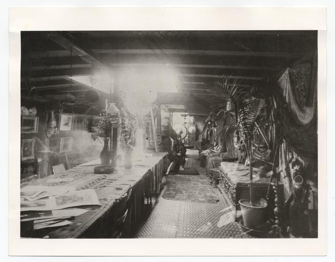 | Keywords: smithsonian institution smithsonianinstitution william m. chase williammchase tile club trip tileclubtrip hudsonriver eriecanal potted palm pottedpalm c. 1880 c1880 historical palm skylight monochrome photo border Description: Identification on verso (handwritten): 1880 tile Club trip up Hudson River, Erie Canal. Wm. Chase and others. Creator/Photographer: Unidentified photographer Medium: Black and white photographic print Dimensions: 21 cm x 26 cm Date: 1880 Repository: Archives of American Art Accession number: aaa_chapgall_4967 Description: Identification on verso (handwritten): 1880 tile Club trip up Hudson River, Erie Canal. Wm. Chase and others. Creator/Photographer: Unidentified photographer Medium: Black and white photographic print Dimensions: 21 cm x 26 cm Date: 1880 Repository: Archives of American Art Accession number: aaa_chapgall_4967 |
