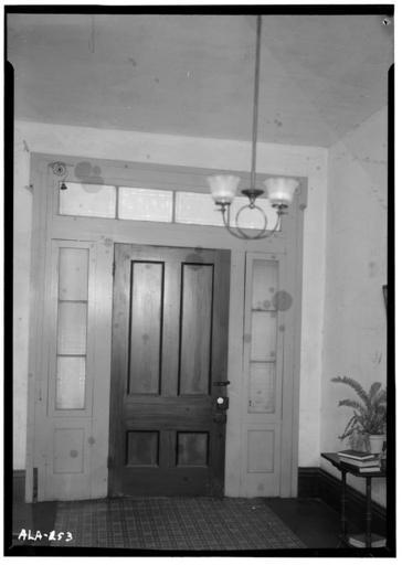 Keywords: William Poole House 1936 INTERIOR VIEW OF FRONT HALL DOOR, FIRST FLOOR.jpg en 8 Historic American Buildings Survey Alex Bush Photographer December 12 1936 INTERIOR VIEW OF FRONT HALL DOOR FIRST FLOOR HABS ALA 46-DAYT 2-8 Library of Congress http //lcweb2 loc gov/pnp/habshaer/al/al0300/al0367/photos/003985pv jpg Alex Bush 1936-12-12 http //lcweb2 loc gov/pnp/habshaer/al/al0300/al0367/photos/003985pu tif PD-USGov William Poole House ¢ 1936 in Alabama Alex Bush Historic American Buildings Survey of Alabama |