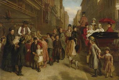 | Keywords: William Powell Frith - Poverty and Wealth (1888).jpg Artwork Creator William Powell Frith 1888 Oil on canvas size cm 81 3 119 4 object history Sale London May 4 1889 lot 139<br/>James B Andrew Esq 1951<br/>Peter Nahum London exhibition history London Royal Academy 1888 no 26 credit line W P Frith 1888 ~ lower left signature / date accession number http //www sothebys com/de/auctions/ecatalogue/2007/19th-century-european-art-n08355/lot 170 html Sotheby's New York 23 Oktober 2007 lot 170 PD-old-100 DEFAULTSORT Frith William Powell; Poverty and Wealth; Sotheby's 2007 William Powell Frith Images from Sotheby's |