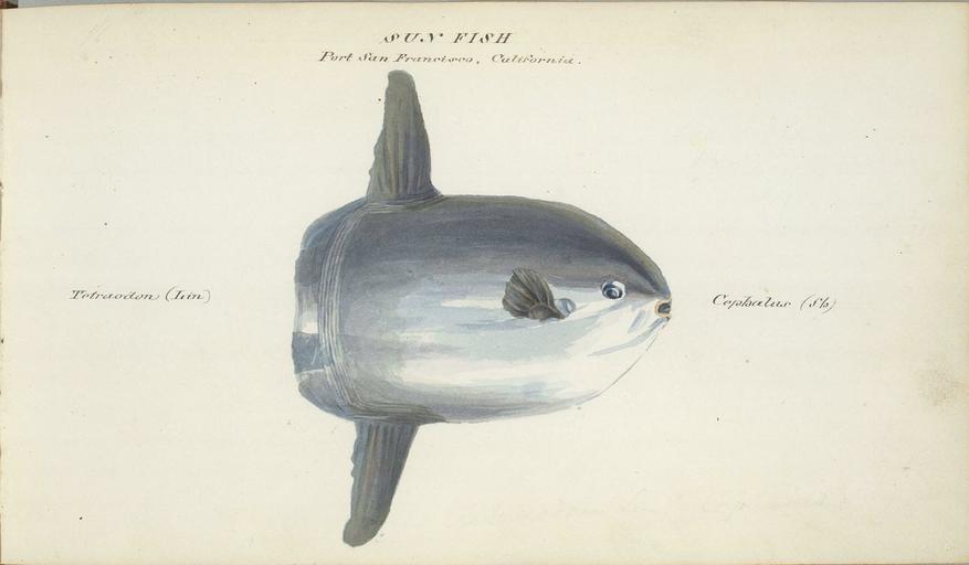 | Keywords: William Smyth sunfish.jpg Sun fish Port San Francisco California Tetraodon Irin Cephalus Drawing on paper Watercolor Dimensions 13 7 x 23 7 cm UC Berkeley Bancroft Library <br> Object ID BANC PIC 1963 002 1303 11--AL B <br> Downloaded from http //lunaweb giza tulane edu/luna/servlet/detail/MOAC~100~1~53446~46737 Sun-fish -Port-San-Francisco -Calif circa 1825 1827 William Smyth 1800-1877 PD-100 William Smyth 1800-1877 Molidae | ||||