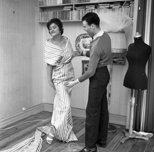 Keywords: mote klær design art fashion clothes haute couturier blackandwhite monochrome black and white Visning av William Duborgh Jensens aller første kolleksjon i Riddervoldsgate 9 på Frogner i Oslo, våren 1958. Modellen Bjørg sammen med William. Fotograf: Strand Arkivreferanse: PA-0797_Ud_2271_002_002 Visning av William Duborgh Jensens aller første kolleksjon i Riddervoldsgate 9 på Frogner i Oslo, våren 1958. Modellen Bjørg sammen med William. Fotograf: Strand Arkivreferanse: PA-0797_Ud_2271_002_002 |