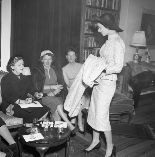 Keywords: mote klær design art fashion clothes haute couturier blackandwhite people monochrome groupshot black and white Visning av William Duborgh Jensens aller første kolleksjon i Riddervoldsgate 9 på Frogner i Oslo, våren 1958. Fotograf: Strand Arkivreferanse: PA-0797_Ud_2271_001_001 Visning av William Duborgh Jensens aller første kolleksjon i Riddervoldsgate 9 på Frogner i Oslo, våren 1958. Fotograf: Strand Arkivreferanse: PA-0797_Ud_2271_001_001 |