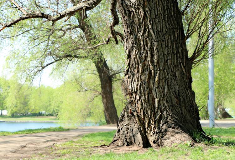 Keywords: willow tree trunk bark landscape nature outdoors forest green pond park