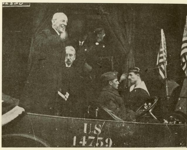 | Keywords: president wilson paris france fourteen points fourteenpoints large crowd motorcar car flag monochrome Local Accession Number: 168 Description: Parisians and Americans greet Woodrow Wilson in France. Wilson became the first president to leave the United States while in office when he traveled to France in December, 1918. Photographer: Unknown Source: Research Library, 20th Century Fox Size: 8x10 Medium: Print, Black and White Date: 1918 Local Accession Number: 168 Description: Parisians and Americans greet Woodrow Wilson in France. Wilson became the first president to leave the United States while in office when he traveled to France in December, 1918. Photographer: Unknown Source: Research Library, 20th Century Fox Size: 8x10 Medium: Print, Black and White Date: 1918 |