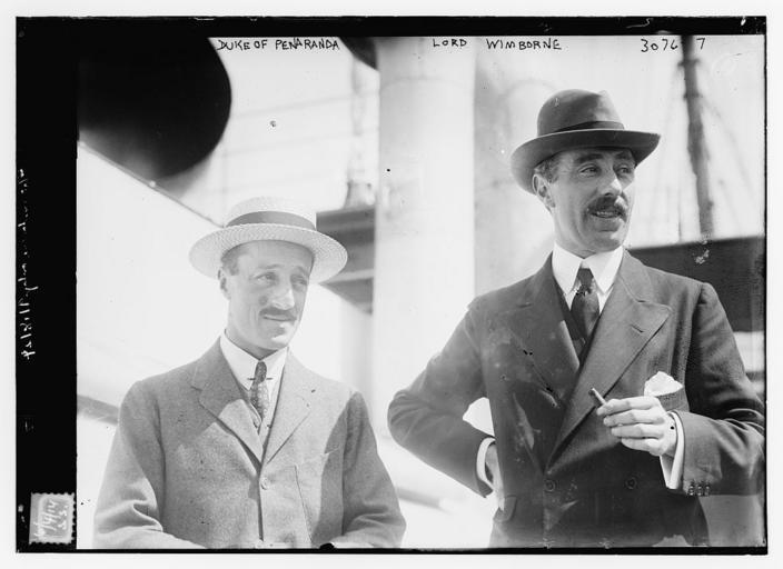 | Keywords: Wimborne 5496668395 4d06324734 o.jpg en wikipedia 2012 January 8 File Wimborne 5496668395 4d06324734 o jpg Hernando Fitz-James Stuart 1882-1936 and Ivor Churchill Guest 1873-1939 on June 4 1914 in New York City Duke of Penaranda Lord Wimborne LOC Bain News Service publisher Duke of Penaranda Lord Wimborne between ca 1910 and ca 1915 1 negative glass ; 5 x 7 in or smaller Notes Title from unverified data provided by the Bain News Service on the negatives or caption cards Forms part of George Grantham Bain Collection Library of Congress Format Glass negatives Rights Info No known restrictions on publication Repository Library of Congress Prints and Photographs Division Washington D C 20540 USA hdl loc gov/loc pnp/pp print General information about the Bain Collection is available at hdl loc gov/loc pnp/pp ggbain Persistent URL hdl loc gov/loc pnp/ggbain 16150 Call Number LC-B2- 3076-7 ggbain 16150 en wikipedia 2011-03-04 Richard Arthur Norton 1958- wikipedia en PD-Bain Original upload log page en wikipedia Wimborne_5496668395_4d06324734_o jpg 2011-03-04 21 17 Richard Arthur Norton 1958- 1024×745× 99623 bytes <nowiki>Hernando Fitz-James Stuart 14th Duke of Peñaranda de Duero 1882-1936 and Ivor Churchill Guest 1st Viscount Wimborne 1873-1939 on June 4 1914 in New York City PD-US Duke of Penaranda Lord Wimborne LOC Bain News Service publishe</nowiki> Hernando Fitz-James Stuart 14th Duke of Peñaranda de Duero Ivor Guest 1st Viscount Wimborne House of Peñaranda de Duero |