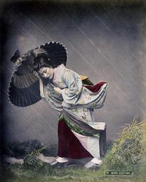 Keywords: Wind Costume.jpg en Wind Costume a young Japanese girl out in the rain circa 1890s Hand-tinted photographic studio portrait 1890 https //flic kr/p/6gBqrc The National Archives UK cc-zero Uploaded with UploadWizard Female traditional clothes of Japan Geta footwear 19th-century women of Japan 19th-century portrait photographs of standing women at full length 19th-century portrait photographs not categorised by year Color photographic portraits Hand-colored photographs of women 19th-century umbrellas Females with umbrellas People with umbrellas in Japan Women leaning forward |