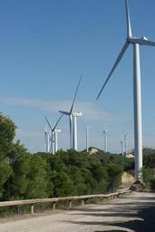 Keywords: wind farm windmills landscape wind turbine road tarragona spain