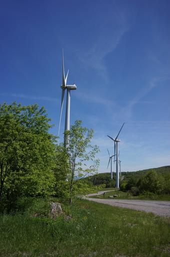 Keywords: wind power station plant park green grass blue sky mill meadow electric generator agriculture white river conservation