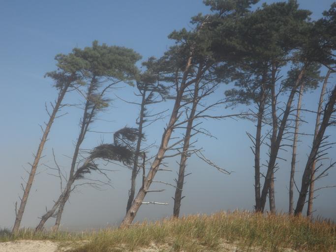 Keywords: windfluechter wind trees coast beach sea baltic sea haze hazy