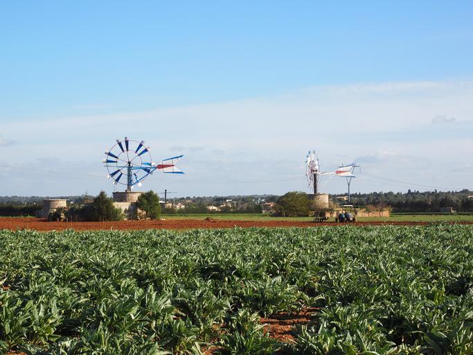 Keywords: windmill mallorca muro mill wind energy wing wind power field arable cultivation artichoke cynara cardunculus cynara scolymus thistle-like crop composites asteraceae flower vegetables vegetables