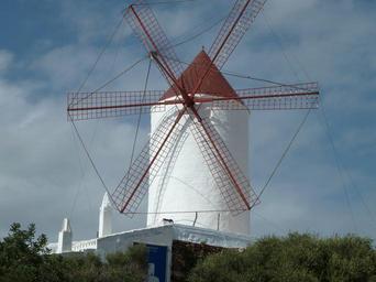 Keywords: windmill menorca spain balearic mediterranean sky europe white building summer island vacation traditional village sunny minorca outdoor scenic old spanish