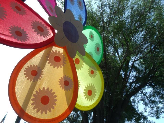 Keywords: windmill spring tree nature green wind flowers mill decoration red orange yellow blue colorful pattern