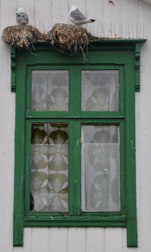Keywords: window gulls wooden windows old window architecture green nest nests norway andenes