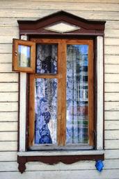 Keywords: window frame wood wall white glass pane shiny lace curtain ornate pretty
