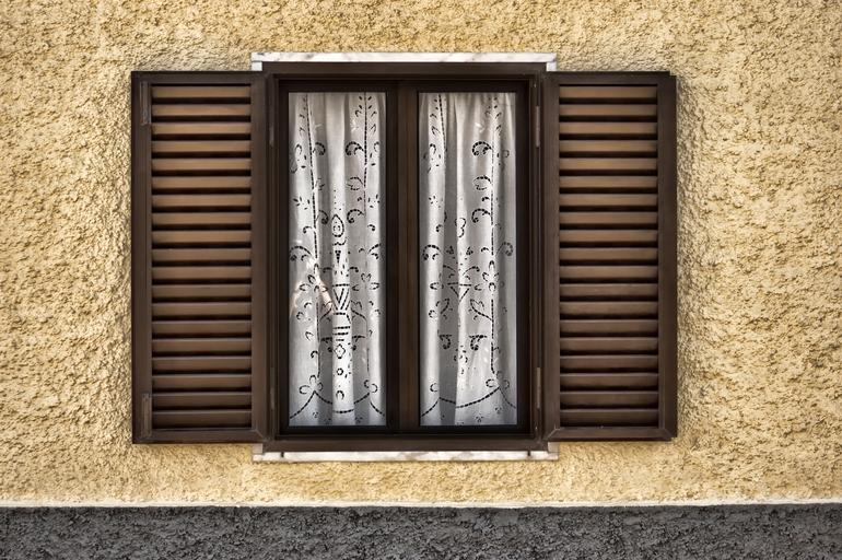 Keywords: window home yellow curtains yellow house portugal wall shutters