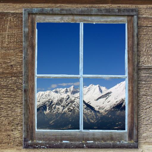 Keywords: window old hut kahl mountains winter landscape snowy ski area