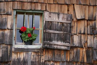 Keywords: window vacation shingle housewife wood shingles decorative flowers geranium romantic past time decoration stylish still life shutters