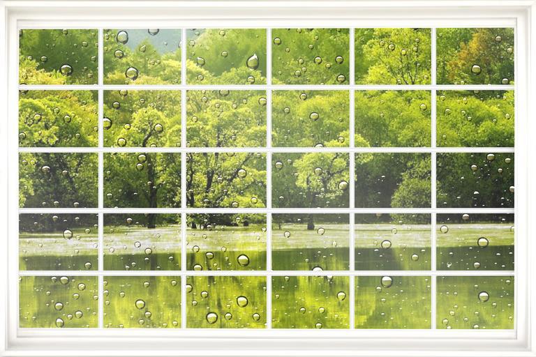Keywords: window view frame garden sill background home green modern white blank interior new clipping path tree double estate trim contemporary grass lake woods panel rain