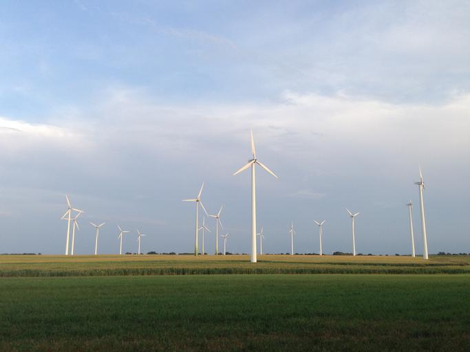 Keywords: windräder sky blue meadow pinwheel energy