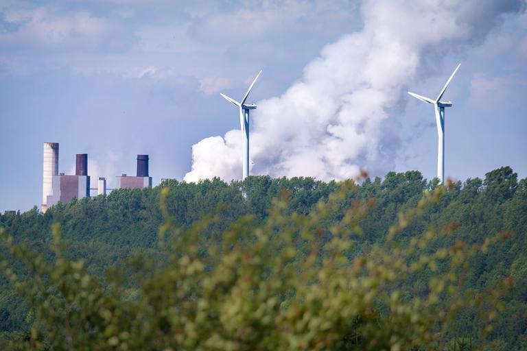 Keywords: windräder water vapor power plant power generation lignite-fired power plant chimney smoke energy current factory industry electricity