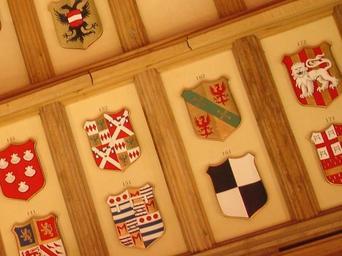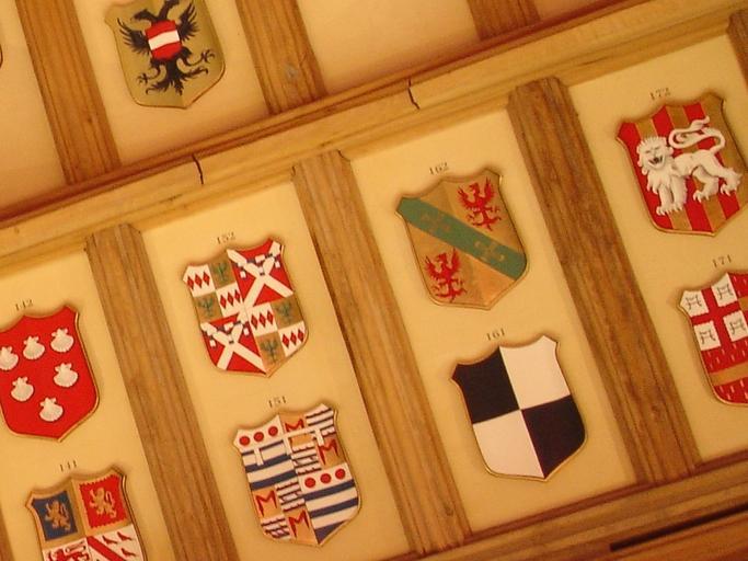 Keywords: WindsorStGeorgeHallAlmadaCoatOfArms.jpg Coats of arms of Knights of the Garter on the ceiling of St George's Hall Windsor Castle Top left Albert V of Austria; 142 Lord Scales; 152 Richard Neville Earl of Salisbury; 162 Alvaro d'Almada Count of Avranches; 172 presumably Sir Edward Hull Paly Gules and Or a lion statant guardant Argent ; 141 John Talbot Earl of Shrewsbury; 151 Sir John Grey; 161 Sir Thomas Hoo; 171 Lord Bourchier Own 2005-04-11 Aalmada Public domain Knights of the Garter 15th century Coats of arms of English nobility Coats of arms of Austrian nobility Order of the Garter in heraldry Coats of arms of Almadas Interior of Windsor Castle Paintings of coats of arms