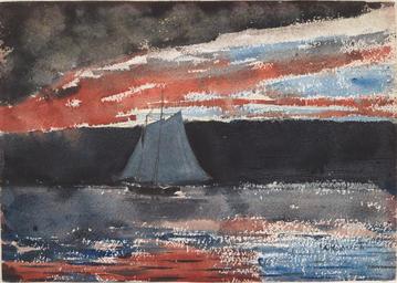 Keywords: Winslow Homer - Schooner at Sunset (1880).jpg Artwork Creator Winslow Homer Schooner at Sunset 1880 Watercolor graphite wove paper cm 25 35 Institution Fogg Art Museum 1943 298 Harvard Art Museums/Fogg Museum Bequest of Grenville L Winthrop Homer 1880 ~ lower right signature / date 1 http //www harvardartmuseums org/collections/object/299942 Harvard Art Museums<br/>2 https //www google com/culturalinstitute/asset-viewer/schooner-at-sunset/5QFuVdVoICdllw Google Art Project PD-old-100-1923 1910 DEFAULTSORT Homer Winslow; boats Schooner at Sunset 1880; Fogg Art Museum Watercolor paintings by Winslow Homer Paintings by Winslow Homer in the Fogg Art Museum 1880s paintings by Winslow Homer 1880 Schooner at Sunset; Fogg Art Museum Google Art Project works by Winslow Homer Google Art Project works in Harvard Art Museums |