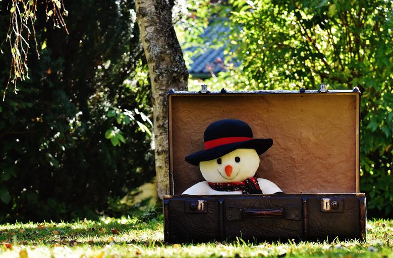 Keywords: winter ade snow man send away luggage antique funny leather old suitcase junk generations travel go away wave