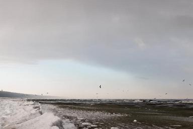 Keywords: latvia jurmala baltic sea balticsea gulf of riga gulfofriga bay seaside beach winter snow ice water gulls seagulls seabirds birds shore coast outdoor sky Jurmala beach in winter Jurmala beach in winter