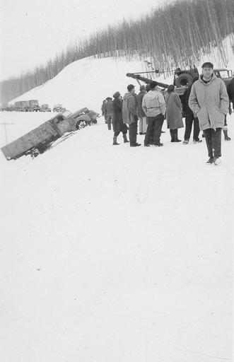 | Keywords: alaska highway alaskahighway world war two worldwartwo second world war secondworldwar wwii united states army corps of engineers unitedstatesarmycorpsofengineers blackandwhite monochrome snow outdoor black and white From the Gwen Collip fonds, PR1996.0277/7. From the Gwen Collip fonds, PR1996.0277/7. |