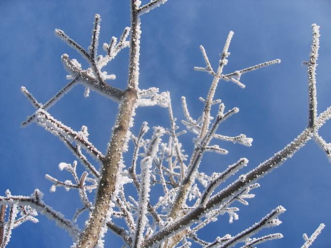 Keywords: winter hoarfrost cold frost tree leaves branches nature frozen snow ice plant forest fog atmosphere winter time