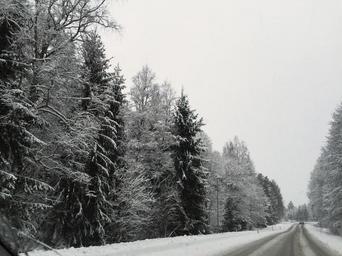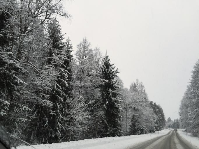 Keywords: winter road snow forest tree time of year sweden winter landscape