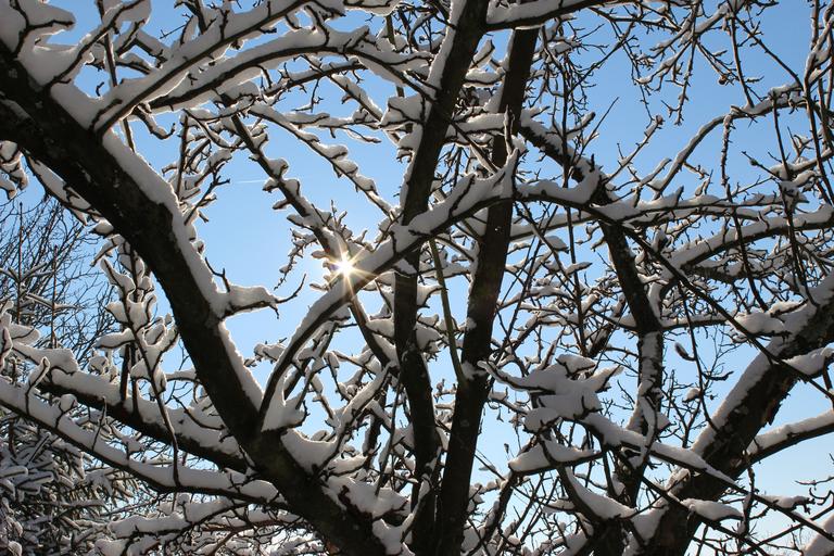 Keywords: winter snow branches light back light white landscape cold forest trees wintry sunshine