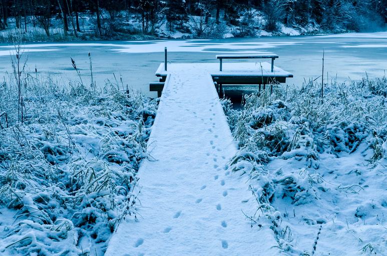 Keywords: winter snow horizon landscape relaxation lake ice nature water vista blue sweden forest trees tree fir park jetty