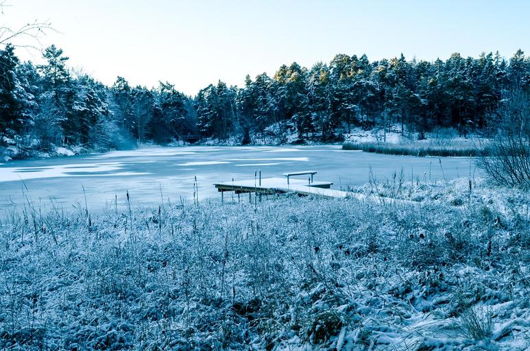 Keywords: winter snow horizon landscape relaxation lake sunset ice nature water vista sky blue sweden forest trees tree fir park jetty