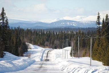 Keywords: winter snow mountain swedish mountains sweden road winter landscape tree forest plow dykes