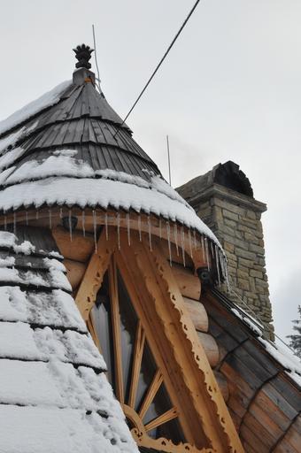 Keywords: winter snow mountains house cottage biel frost winter in the mountains white building the roof of the szczyrk