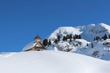 Keywords: winter snow south tyrol italy chapel mountains alpine wintry cold blue snowy