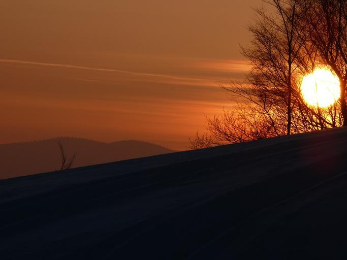 Keywords: winter snow the sun west the charm of the mountains light landscape tree sunset
