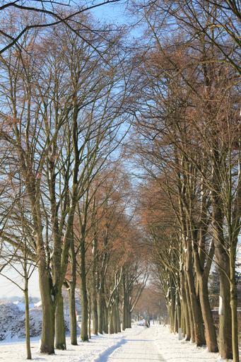Keywords: winter tree lined avenue avenue snow sun away tree